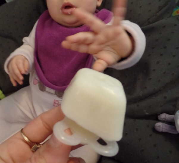 Tu déposes le lait dans le bac à glaçons et tu y ajoutes tes « tututes » -easy-