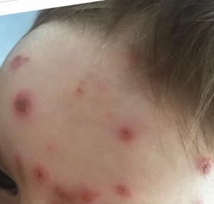 Ꮥienna-ℛose a fait une petite varicelle peu d’éruptions mais des envies de se gratter ++. Les boutons n’étaient pas très gros et n’a garder qu’un petite marque sur le visage (oui…). Je n’ai même pas vraiment de photos car elle a eu on va dire 10 boutons?