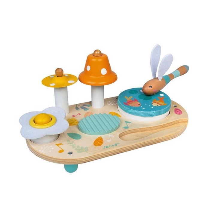 Pour compléter les petits hochets ou peluches, nous en aimons plusieurs et bébé adore les bruits et varier les textures, il y en a des jolis et des pratiques…. (les jolis doux de chez lilliputiens encore et toujours, notre mignon hochet bâton de pluie pouet de chez skip hop ou encore le set d’hochets ventouses bien pratique pour l’extérieur, sans oublier le traditionnel bâton de pluie).