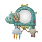 Dans la même idée et pour une utilisation plus longue, (merci pour ce cadeau), nous avons reçu le miroir éléphant de chez infantino. Le plus? Son miroir ♡ il est possible de déposer au sol pour que l’enfant se regarde ou joue avec les petits sujets (sonores également et différents tissus et couleurs), je le trouve génial car on peut l’attacher au siège de la voiture et si bébé est dos à la route (recommandé les premiers nombreux mois de sa petite vie) et bien nous adultes pouvons avoir un œil sur lui constamment, mais ouiiiiii j’aime joindre l’utile à l’agréable…. À l’extérieur, au sol, à table, dans la voiture, je te le dis ideallllll.